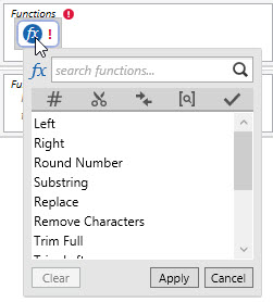 , then click the icon to add a new adjustment operation for the selected field(s). - Click the function symbol in the newly added operation to choose the function to be performed, then click Apply.