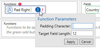 - Hover in the Functions area next to the Fields area to enable the Add icon