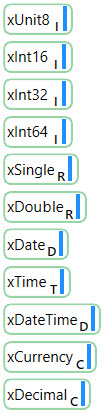 When working with functions and expressions, field data types are indicated by a single-letter designation that appears in the bottom right corner of each field icon. The following is a list of the letter designations used in Data Guru to represent each data type: