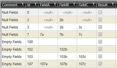 Determine if any of the fields (FieldA, FieldB, FieldC) are not null (void of a value).