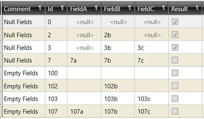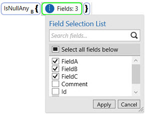 Determine if any of the fields (FieldA, FieldB, FieldC) are null (void of a value).