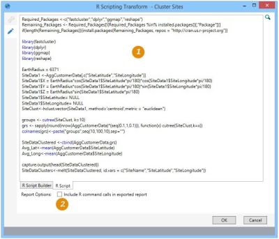 : - Use the R Script Builder to create the R code. You can copy and paste code from another source, or you can type the code directly in the work area of the builder.