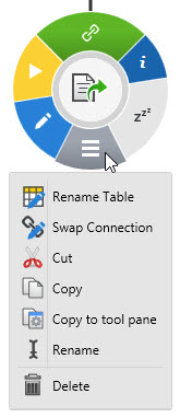 - Hover over the action to display the radial menu, and click on the Manage icon at the bottom, then select Copy to tool pane.