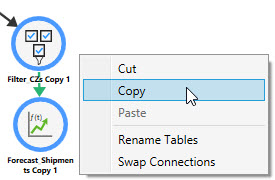 You can cut or copy one or more actions in a macro or workflow, and then paste them to a selected action or the Start icon.