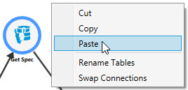 - Select Paste from the Manage icon at the bottom of the action’s radial menu, or right-click and select Paste.