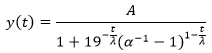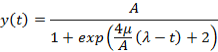 Let t be the time points for which the function values will be returned. The function y(t) shows the total cumulative demands; that is, the function calculates the values of the growth curve for given time points. The S-shaped curve can be represented as shown in the following graph with the foregoing parameter characterization.