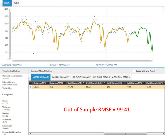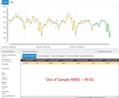 - Review the Model Summary, examining the out-of-sample error metrics to assess the impact of all causals on the model.