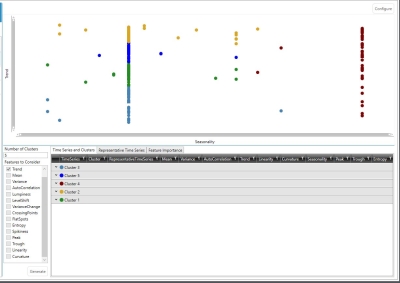 - Time series that do not fit into any cluster, such as those for which a feature score cannot be assessed, are identified as Unclustered.