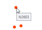 - Graph display of cluster data, with the time series for each cluster represented by a different color. The X and Y axes represent the two features determined by the algorithm to be most important (if more than two features have been selected). You can hover over any data point to display the name of the associated time series.