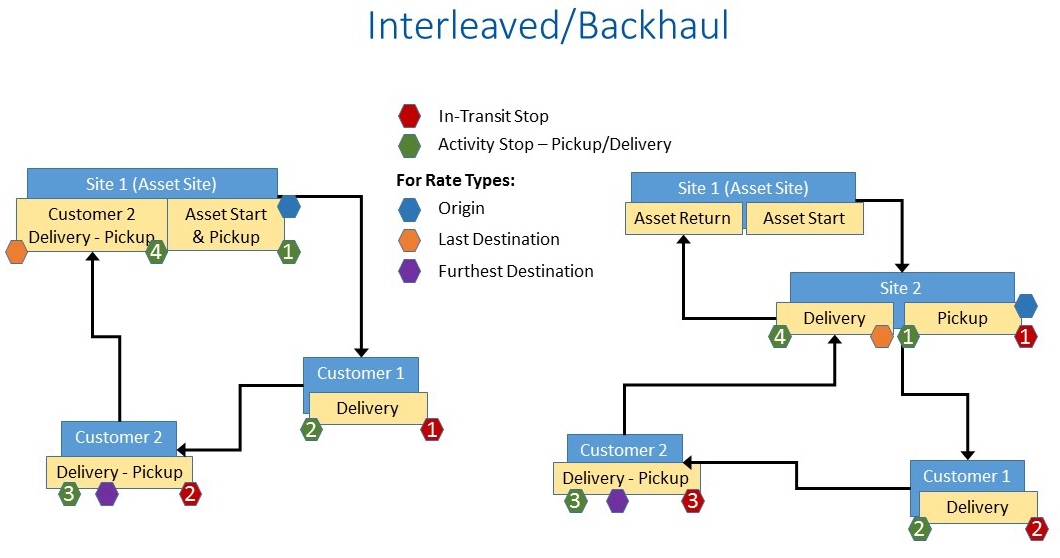 In addition, stops are used when applying the Rate Type, as described in Transportation Optimization options.