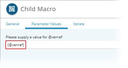 - On the Parameter Values tab, in the Please specify a value for __ box, type the local variable. Enclose the variable in curly brackets. For example, "{@venref}".