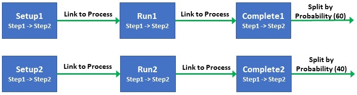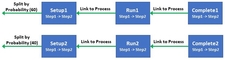 - Assignment Policy values other than “Link to Process” must be placed on the final process. In the example above, we use “Split by Probability” on the Complete process. The earlier processes use “Link to Process”. This ensures that all processes in the series are used.