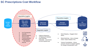 The Path Details table, which is an output of the Cost to Serve algorithm, is reported at the lane level. This table is read into the Supply Chain Prescriptions workflow from a Supply Chain Guru Model (SCGM) database and is then aggregated at path-product level. From this input various features are extracted at Site, Lane and Path level.